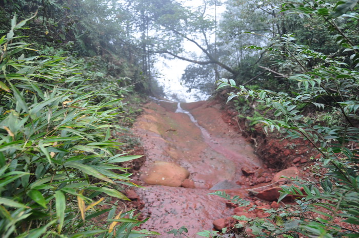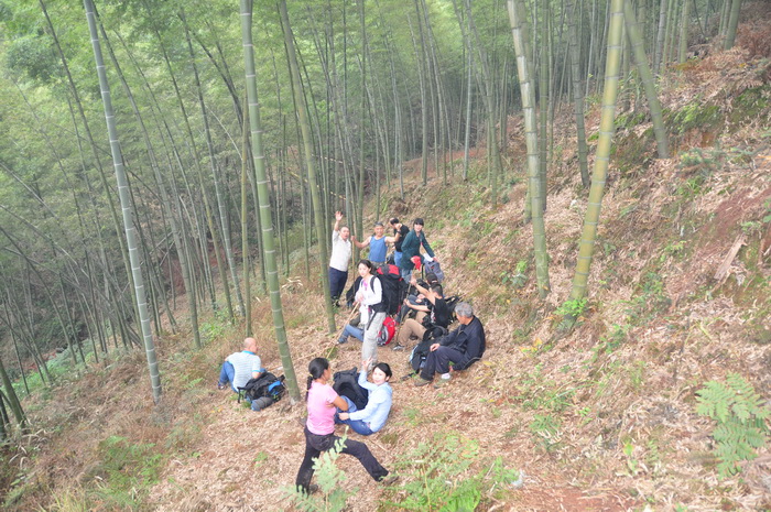 再往下走就是猫鼻梁,坡陡路滑青苔多,大家都很小心,互相鼓励帮助。