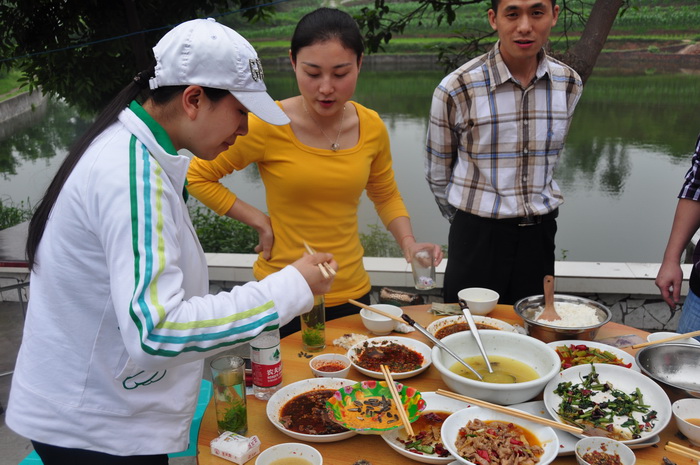 当回锅肉比赛完了以后,接着的是:鸡肉、肥肠、肉丝,看来任务还艰巨。