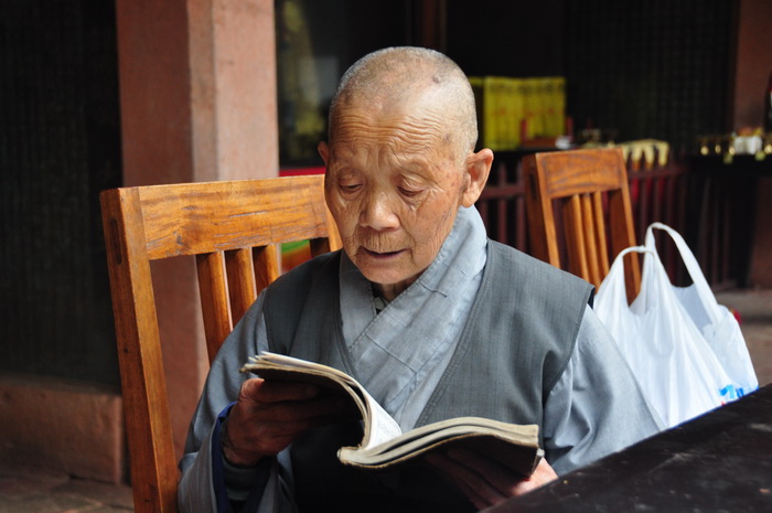 这位奶奶90岁了,眼不花,耳不聋,还给我们朗朗诵读《地藏经》,连眼睛都不戴。再看看我们现在的好多中年人甚至年轻人,惭愧。
