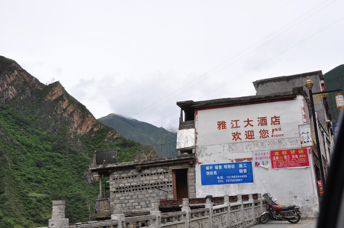 雅江就是建在半山坡上的一个小县城,2004年我们的车在这个城里绕了一圈,女同胞们发现周围都是高山,如果突然垮下来就保证被埋,所以他们就强烈要求我们去住的理塘,理塘虽然高原缺氧,到还平整安全。