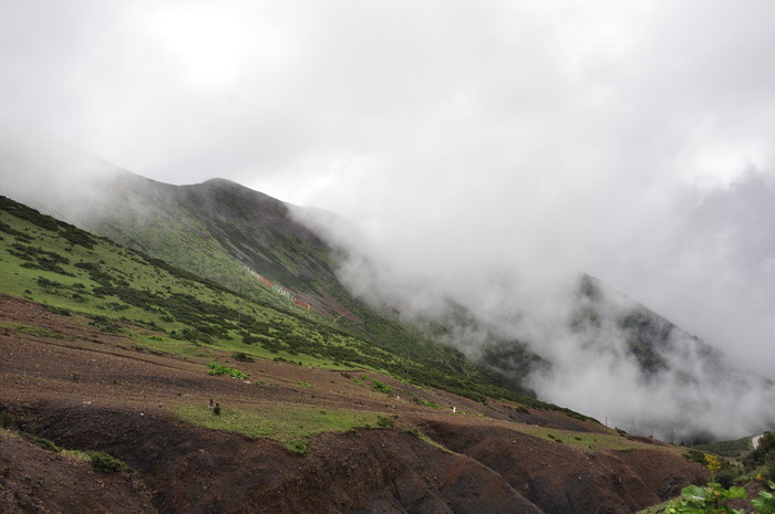 著名的剪子湾山,它的藏语名字叫“惹玛那扎”,意为羊子山口。山口海拔4659米,是318国道经康巴地区的最高山口之一。千山万壑尽收眼底的意境,领略一番茶马古道的古风遗韵。这个山口当地藏民把它叫作羊子山口,源于一个历史传说:相传三世达赖历经艰难险阻进京去朝见皇帝归来时,在渡雅砻江时险些掉进江里,在护法神阿苦当吉的全力护卫下,才得脱险,当走到山口时,他对达赖说他的坐骑神羊累了,需要休息,于是达赖一行就在这里休息。各路护法神在接受达赖评功论赏时,阿苦当吉却遭到冷落,于是心直口快的阿苦当吉不想护送达赖回到拉萨去,达赖为了表示歉意说你一路护驾有功,并敬献哈达以示感谢,达赖说回拉萨已没有你的寺院了,这山背面有个寺院就作为供奉你的寺院吧!这就是我们下面要去参观的郭沙寺。这个山口也因羊累了在此休息而得名羊子山口。更是由于三世达赖在此休息过,方圆百里藏民把它奉为神山。您看,那里挂满随风飘动的经幡,那些五色纸印着马和经文的方块纸叫“隆达”意为风马,就是当地藏民为祈祷全家一年平安和外出顺利,每年新年伊始到此挂经幡,路过这里的人就撒五色风马纸(藏语叫龙达),用风力飘动经幡、飘飞风马纸,向神灵传递祈祷的语言。