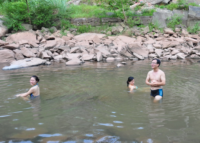 终于挡不住水的诱惑,大家还是下水了,水里不冷不热,还点泥沙都没有,爽啊。