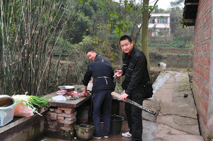 今天准备杀猪两头,我们来的时候已经有一头先被修理。