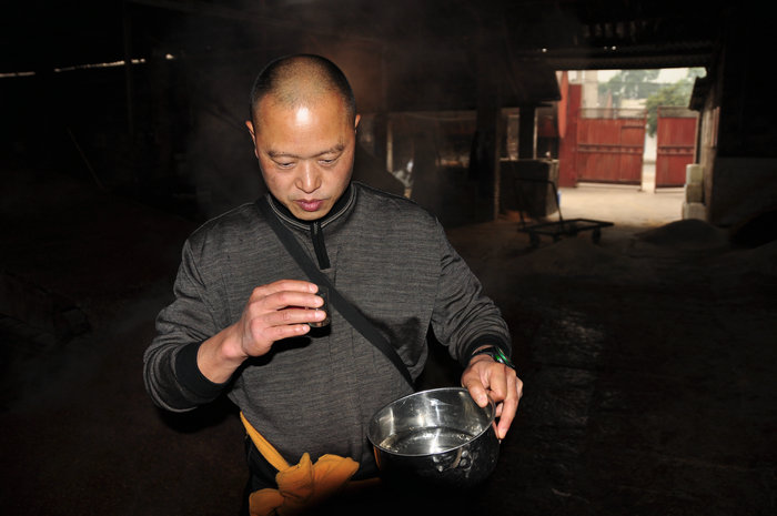 路过一正在生产的酒厂,整了几口刚才烤出来的原度酒。这里的酒是精选八种粮食:大米、糯米、麻豆、黑米、糯高粱、小麦、小米、玉米,历经九十三道纯手工酿制,造就了浓郁的仙香型白酒。