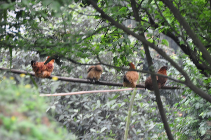 由于这里是蓝田机场的起飞和降落航线,这里的鸡也通过观察学习可以飞到树上休息