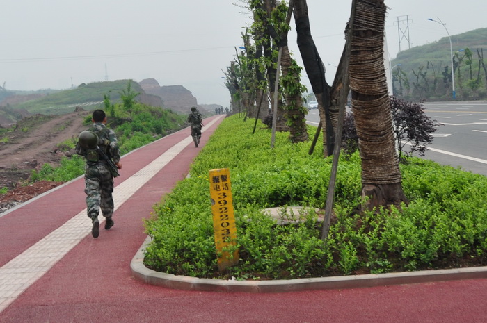从老民居出来,走在城南大道上没有车可以坐,郁闷地走了几十分钟,突然背后传来几个声音:李医生达麻、、回头一看,是一队战士在进行5公里带装备训练