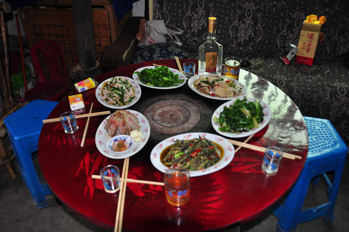 热情的表嫂已经做出了很多好吃的等着我们回来