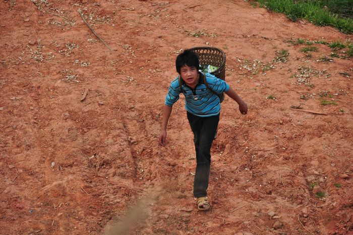 在城里,经常看到的是爷爷或者奶奶背着个书包在后面走,小朋友吃着东西空手去上学的情形。但是,在乡下,这样帮大人干活的小朋友比比皆是。