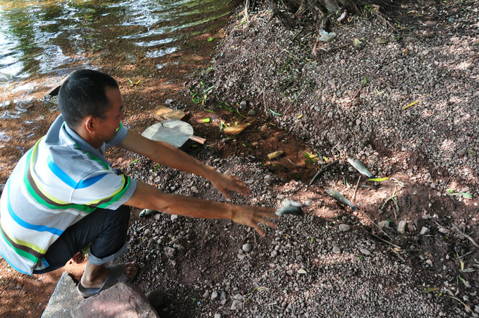 老板正在准备烤鱼,今天这里的鱼也许有点贵,10元一条哦,小虾是2元一串。