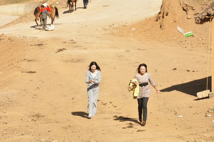 由于被从来没有见过的美景所陶醉,这两位掉队了,当我们宣布离开队伍很有可能被拉上山去必须生育3个孩子才能离开的时候,她们像猴子一样跑来跟上了。