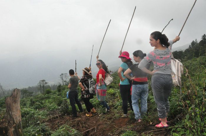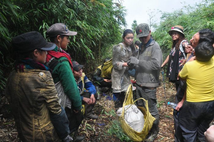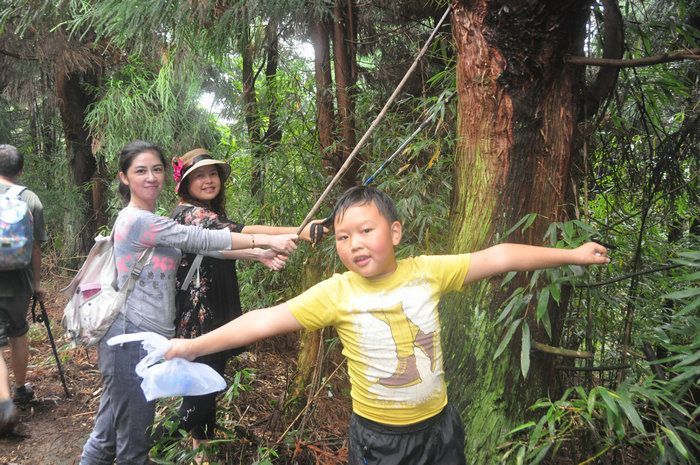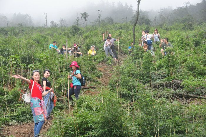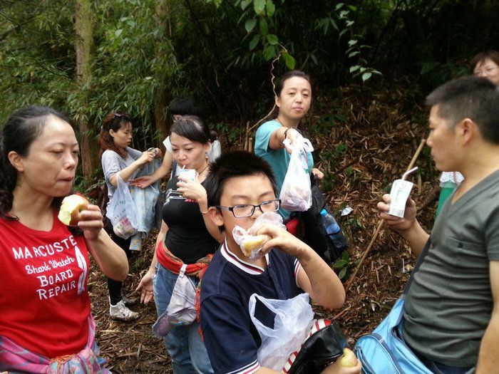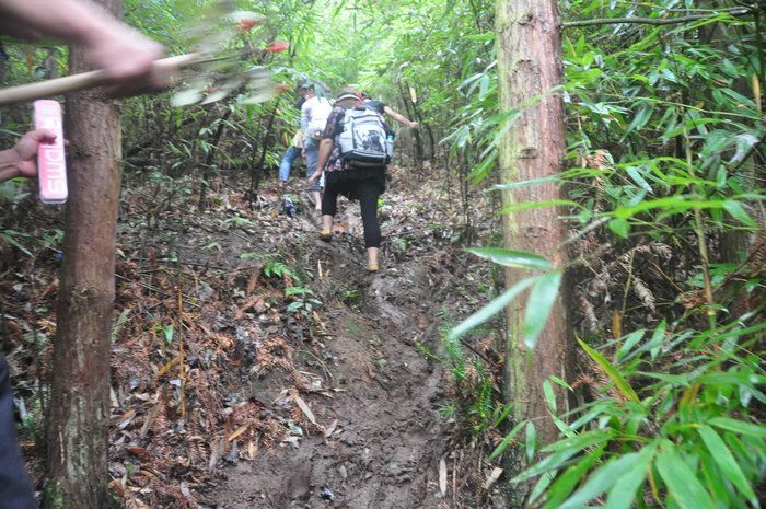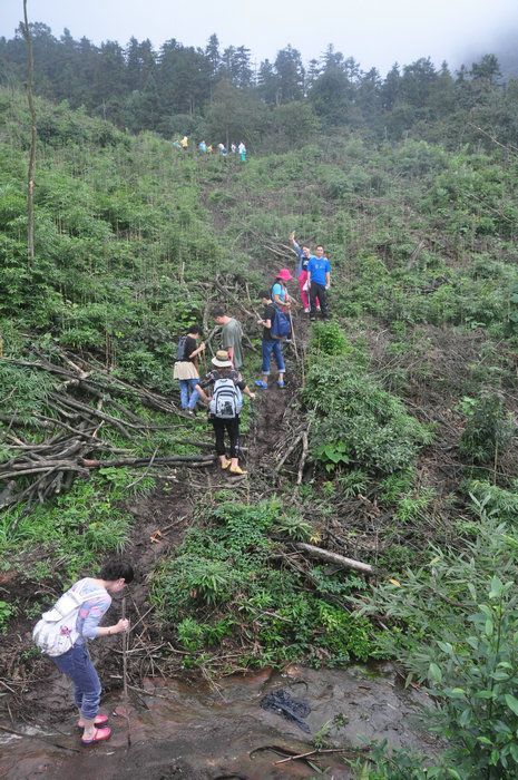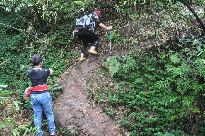 接下来将是今天徒步的最困难路段,属于无人区,这里终年潮湿偏僻,动植物资源特别丰富,大片深山不属于山民,属于国有林场,这个时候大家全身都被汗水湿透了。