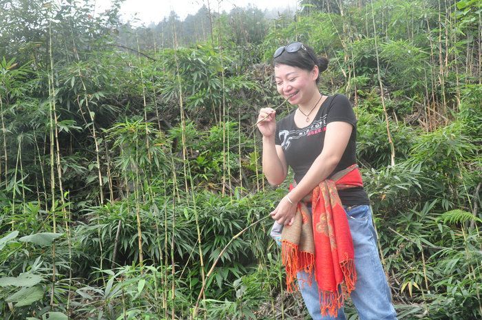 山上遇到些外地人,他们才10多岁,来自马边,彝族,是来帮着林场收竹笋的。