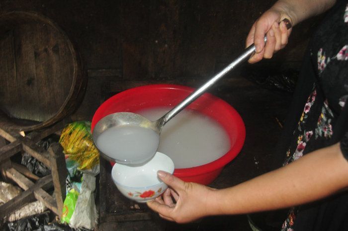 走到林场,口渴了,正好林场有冷好的米汤一大盆,真是久旱遇甘霖,一口气喝了4碗。