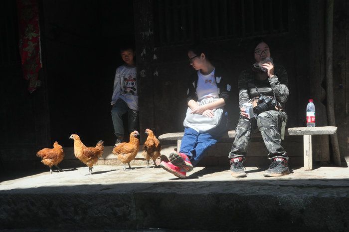 一月的阴雨才见阳光,想晒太阳的不仅仅是人,还有鸡。