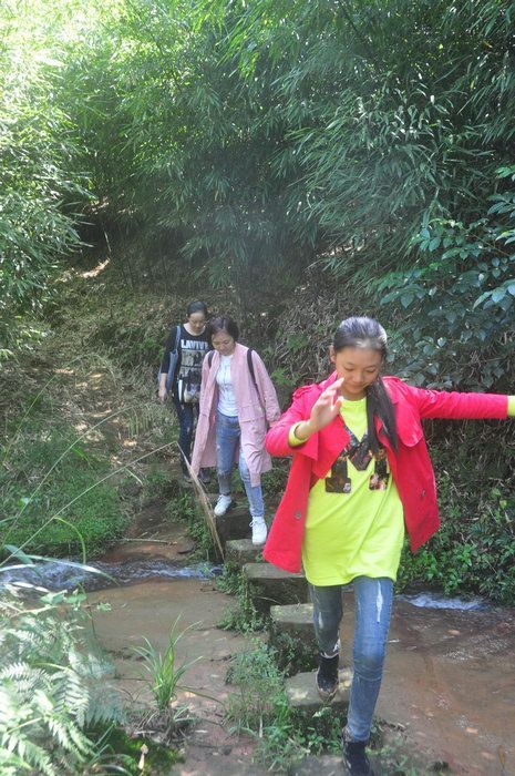 旁边这户主人家热情地端来凳子,艺术家继续在采贝壳,我们享受着山风,聆听着鸟鸣,极目远眺,山涧树梢,画稿溪的猴群正在尽情的嬉戏,它们以竹笋为食,性情温和,怕人,远远躲着陌生人,它们不像峨眉山的猴子那样厚颜无耻。