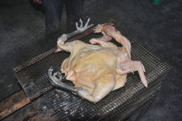 木炭烤瑜伽鸡,木炭才是最健康的,可惜现在城里的烧烤99%都是用钢碳烤的,致癌物质。