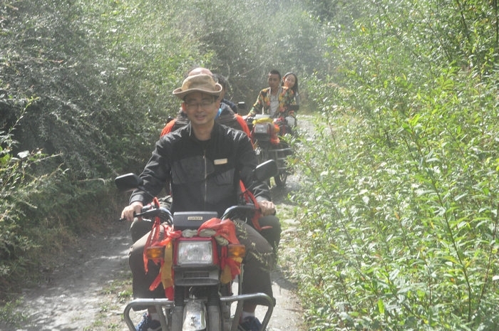拖拉机和摩托车上山,由于太拥挤,饥饿的猎狗依偎在我两腿之间,流着口水,磨着牙齿,鼻翼一动一动,仿佛有什么发现,喂!喂!喂!狗狗,你千万不要乱来哦,有些东西还有很多任务没有完成的哦。。。。。就这样在高度精神紧张的两个小时里,拖拉机的颠簸,手脚的酸软麻木早已经忘到了脑后,好在狗狗最终没有开口。