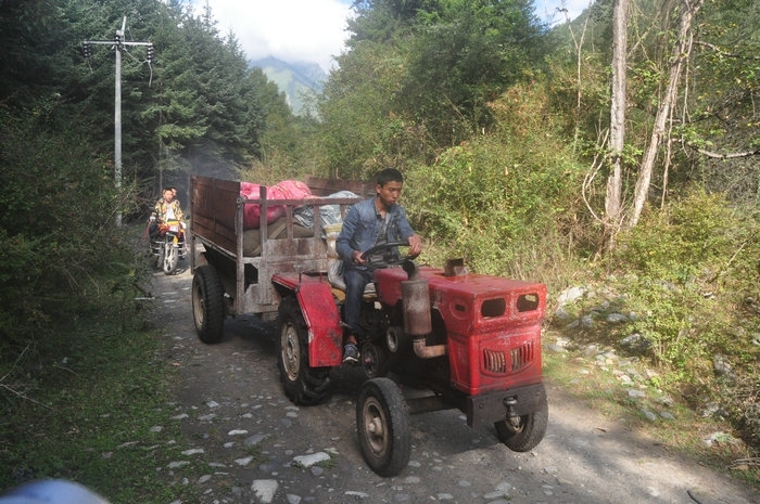 本来说走小路抄近路的,结果一看垮方地方开出的小路,感觉危险,立即改走大路,藏族亲家说曾经就有两个人就在这里滚下悬崖在这河里消失了的。