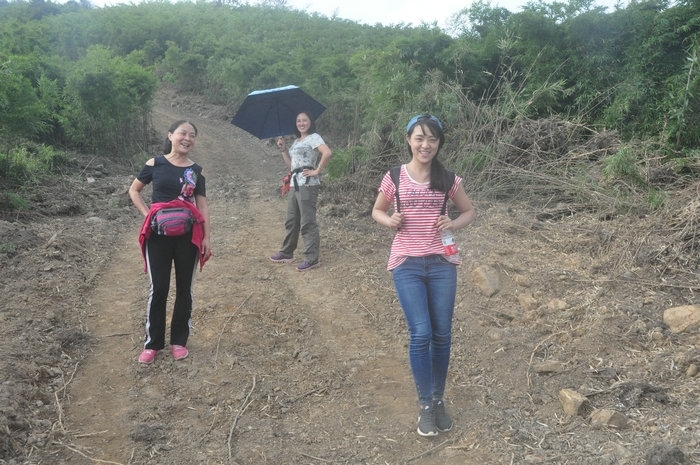 登顶折返的人还不少,面庞带着征服的快感轻松下山。记得2006年我们登上山顶的时候还插了根木棍作为纪念,10年了,不知道发芽没有。