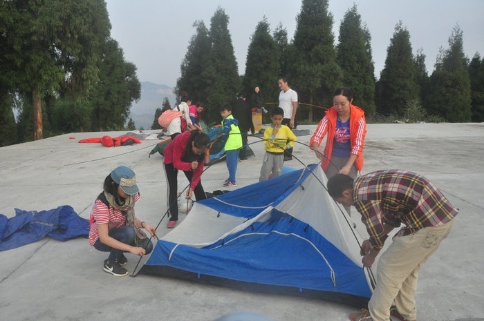 帐篷搭建采取集体合作方式,团队力量充分体现。