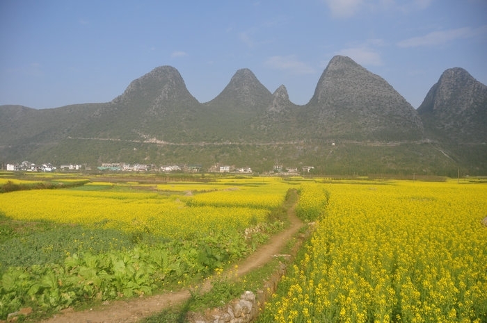 万峰林分为东峰林和西峰林两大片。对外开放的主要是下五屯镇境内的西峰林。西峰林是一座座奇美的山恋,与碧绿的田野、弯曲的河流、古朴的村寨、葱郁的树林融为一体,构成大自然中最佳的生态环境,形成天底下罕见的峰林田园风光。