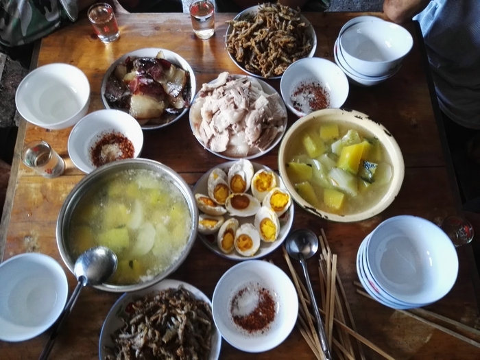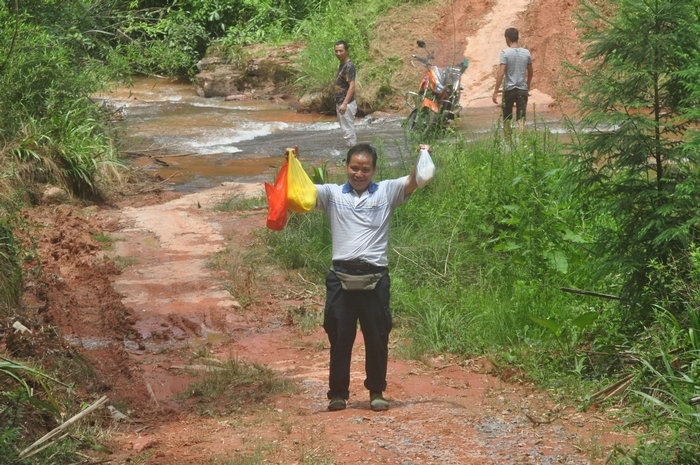 回程的时间仿佛要短得多,但是也花了一个多小时,远远看到丛林中表嫂的那独排老房屋,那里有着我们补充食品饮水的希望,还真的饿了。
