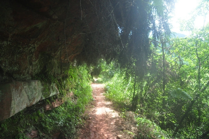 穿过山洞,就是万丈深渊,以前我们就是从这个地方爬上来的。