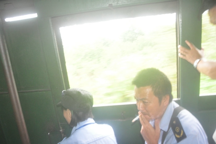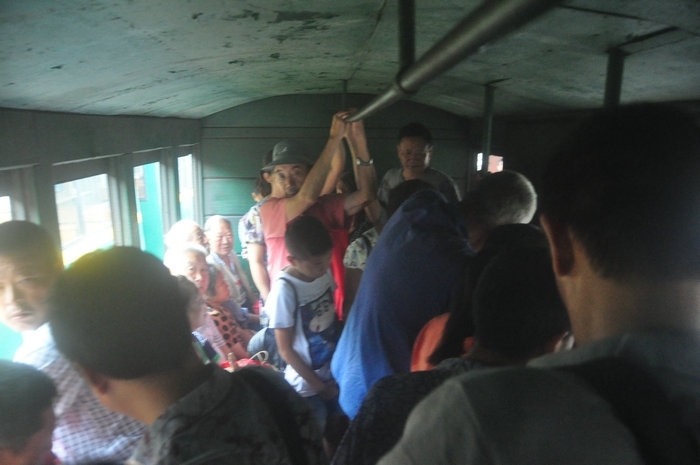 火车票这里是实行的两票制,就是说本地人上车一个站好像是一元钱,全程也不到10元,外地人30元一人。车上已经没有座位,油烟煤烟噪音混杂一起,仿佛已经回到了混沌的年代,列车员带头车上抽烟,满车烟味,游客站满车厢列车员稳坐钓鱼台,视而不见。