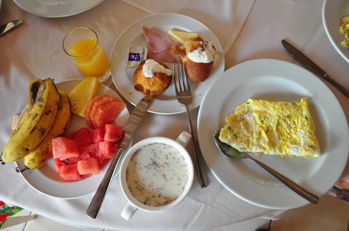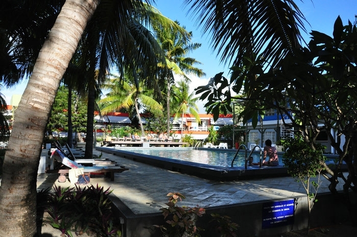 酒店内随手可及的椰子、芒果,还有免费甘蔗水,也可以出房间直接跳入游泳池。