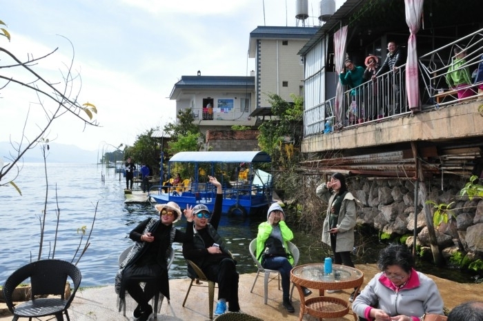 发现一处小渔村,湖景房,在这里吃饭或者住宿,划船免费不限时,非常划算。我们马上出海,为了逗海鸥,准备了面包等海鸥喜欢的食品。