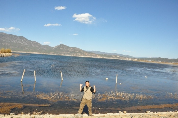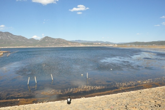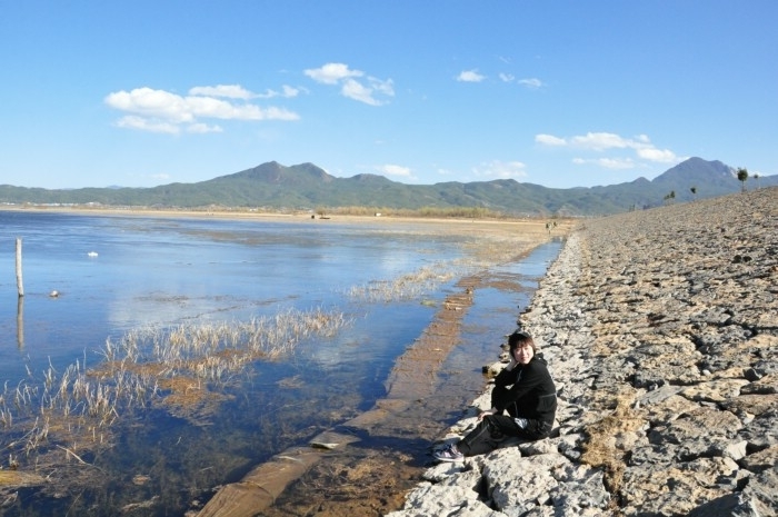 经过一段土路,我们终于到达了拉市海的大坝,这里没有商业运作,没有游客,没有保安乱指方向,只有微风中的宁静,仿佛就是一个人的拉市海一个人的大坝。