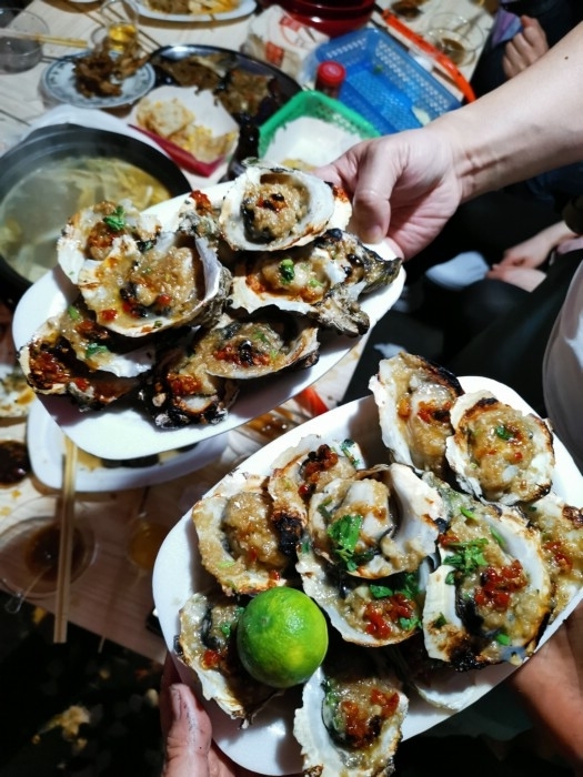凭祥市的夜宵也是生意兴隆,烤生蚝才2.5元一个,我们一下子吃了40个,今天都把减肥的事情忘了。