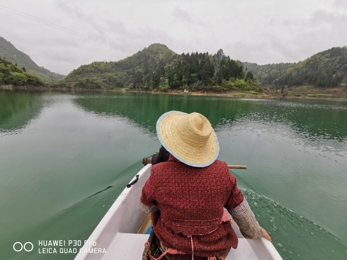 带上打包好的鸡蛋鸭蛋,大妈的儿子热情地送出来上船,这是一艘手拉船,一个人无法拍摄自己,好在对岸也有等船过河的大哥,就顺便拍摄了发过来。