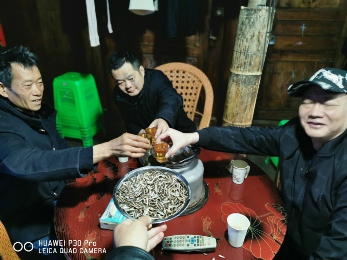 桂花乡老表拿出崖蜂糖包谷酒热情接待我们,还有美食,实在口福。