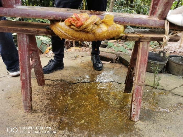 原来我们以为桂花拿回去就可以直接用,今天才晓得不是这样的,新鲜的桂花要先用手揉捏融和后再进行压榨,把水分压榨出来不要,这样可以去苦味,还可以防腐,回去再加上白糖保存,可以做桂花酒,桂花糕,桂花酒汤圆,桂花鸭子,,等很多美食。