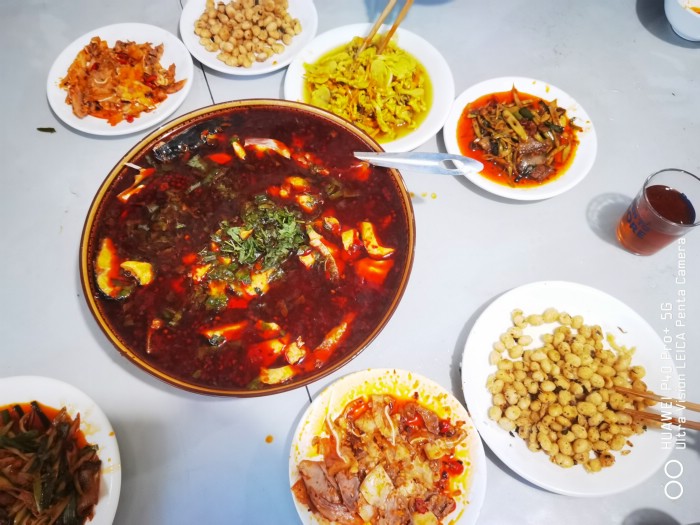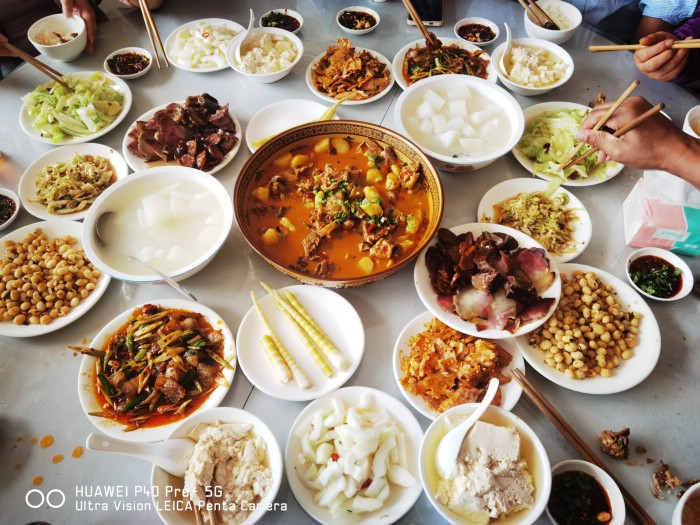 经过拥挤的金口河大峡谷,吃了一家正宗的牛肉馆,水果管饱免费。
